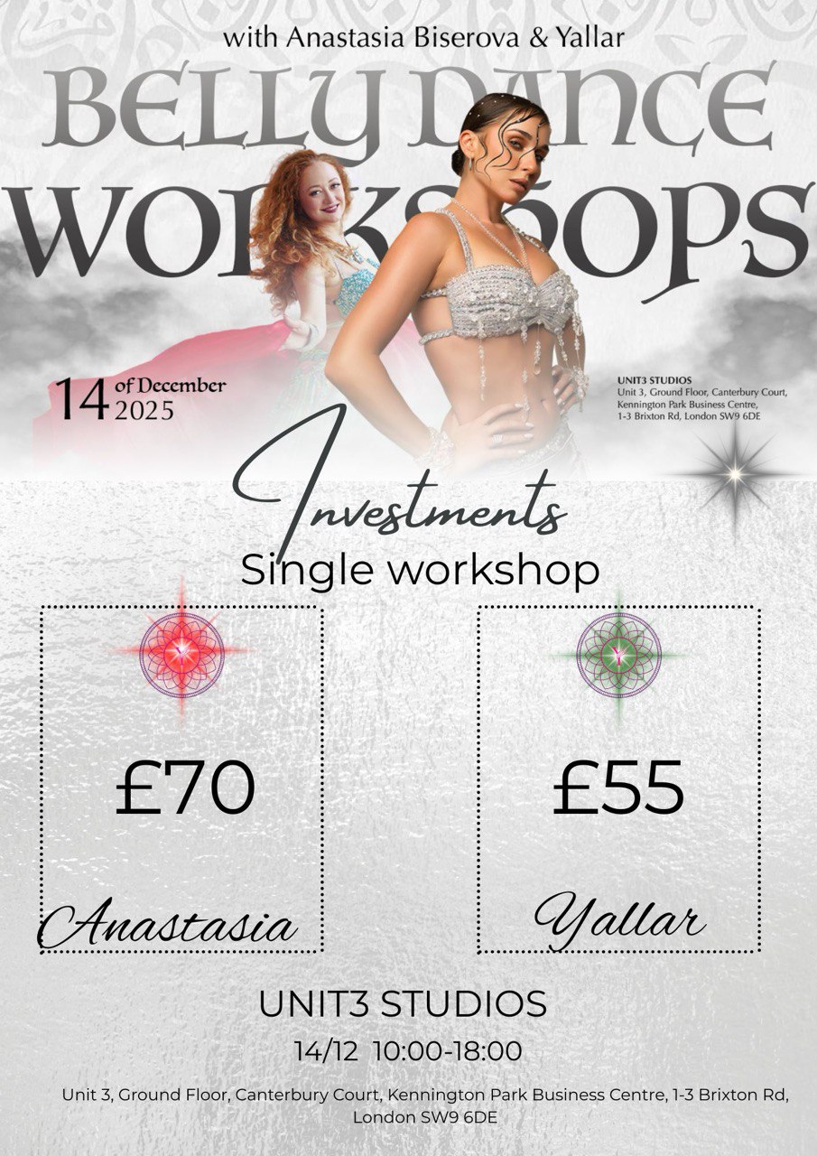 Anastasia Biserova is an internationally acclaimed bellydance artist, IDO World Champion and Cairo festival winner, known for her refined and elegant interpretation of classical Raks Sharki dance. Her elegant style sets her apart from many other dancers, combining technical precision with grace and timeless stage presence. This is a unique opportunity to learn from the best. Join us in London o 14/12 for an unforgettable experience. Are you with us?